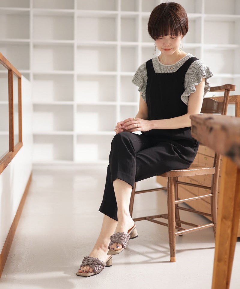 商品説明麦わら風素材をぎゅっと編み込んで、足元に夏らしさを添えたミュールサンダル。