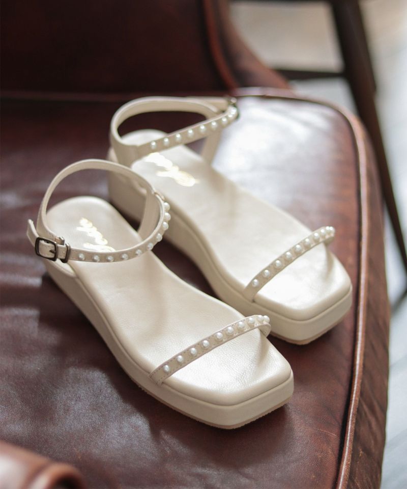 4. パールストラップの厚底サンダル▲返品不可