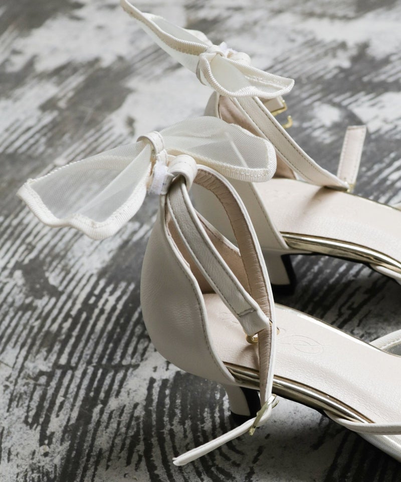 アッパーはチュールに柔らかい生地でパイピングを施し、優しい足当たりに。靴擦れしにくく、フィット感もプラスされます。