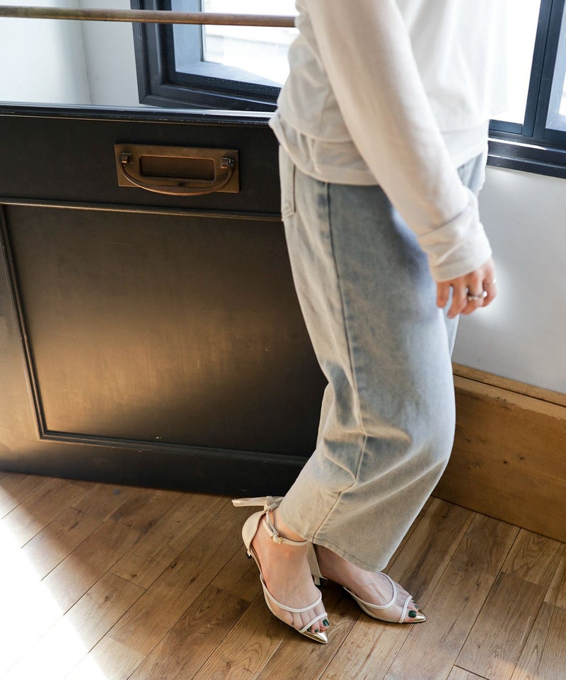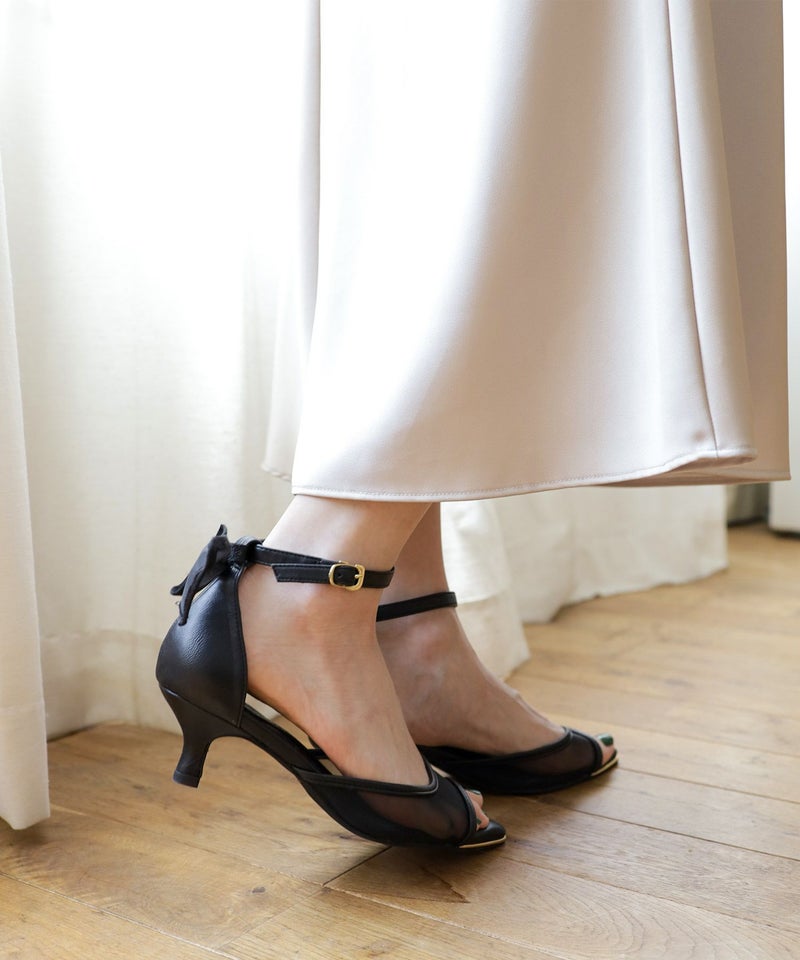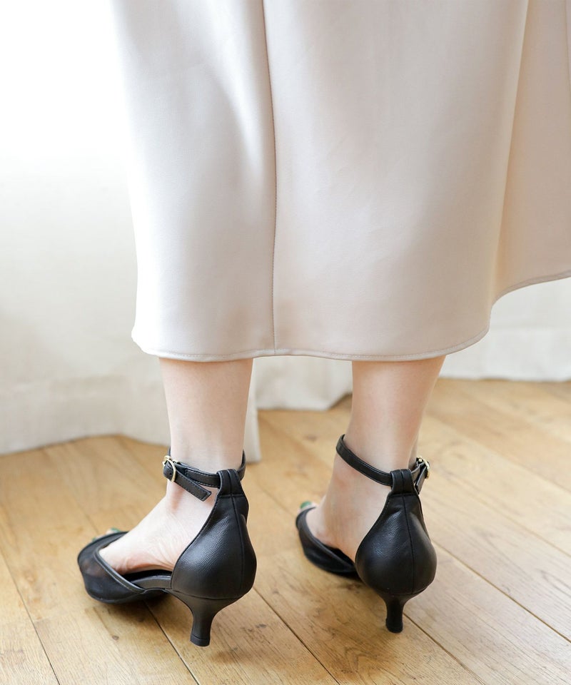 内側にくびれたフォルムのヒールと相まって、華奢な足元を演出してくれます。