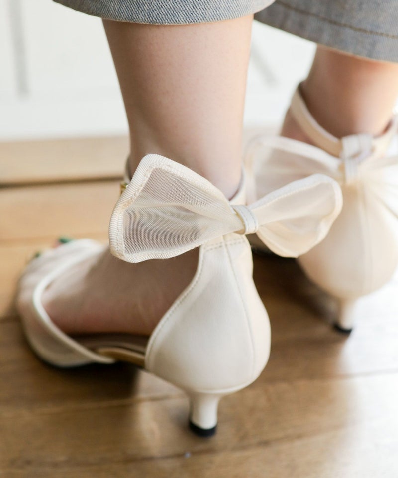 後ろ姿を可愛く飾るリボンは、マジックテープ式でさっと取り外しが可能!リボンを着けて後ろ姿まで華やかに、外してよりシンプルに、コーデに合わせて雰囲気を変えられます。