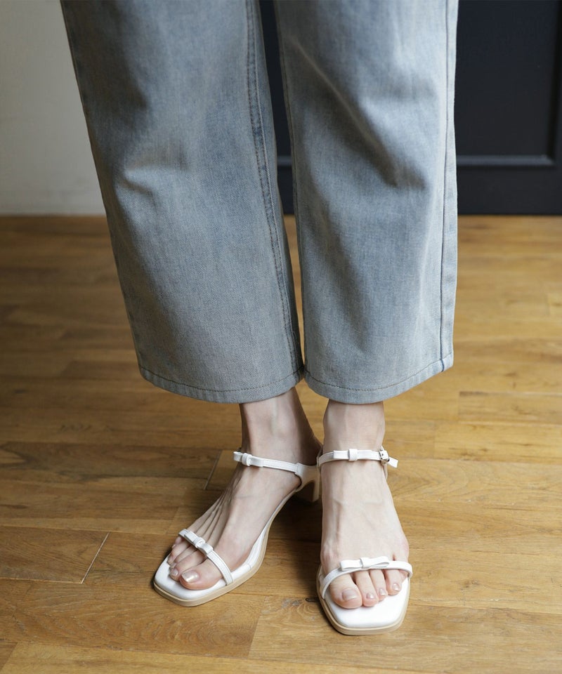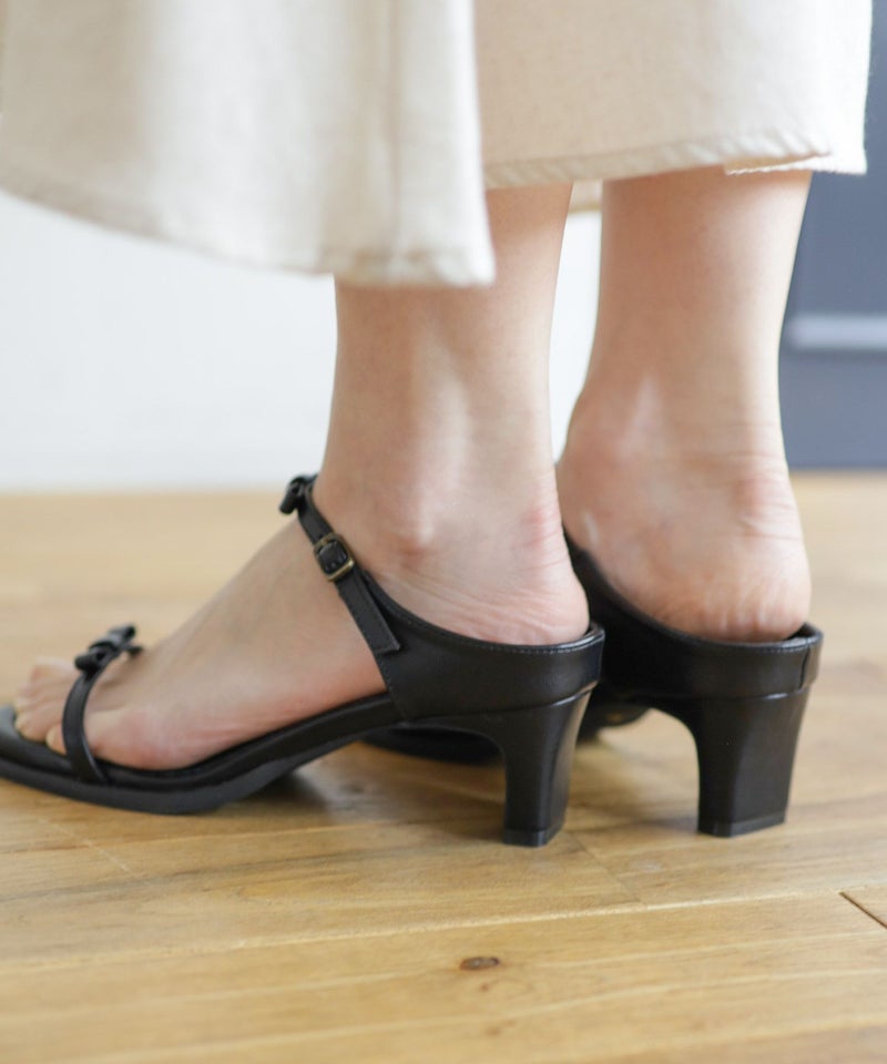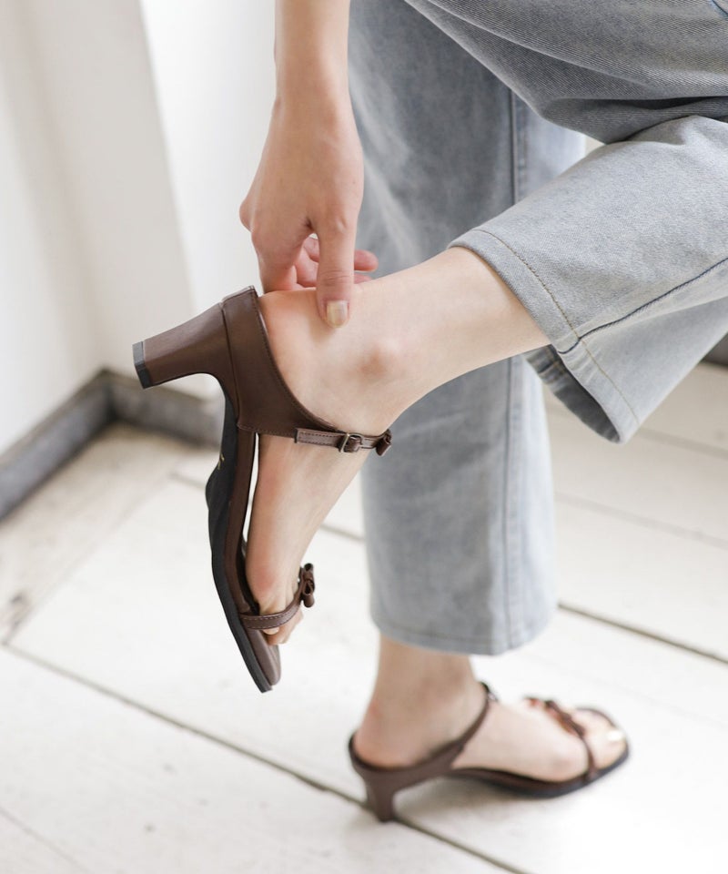 足首側のストラップは実は隠しゴム付き!動きに合わせて伸縮してくれて、華奢なストラップでも足に食い込みにくく快適な履き心地です。