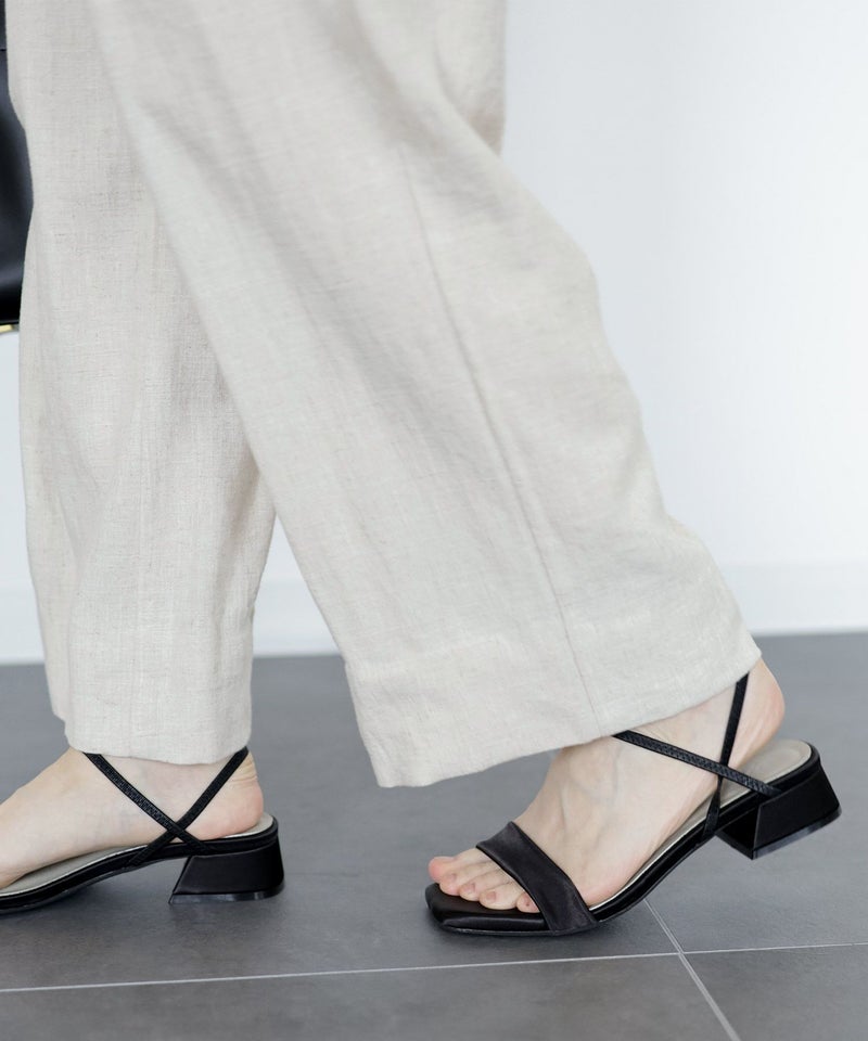 2Wayで好きな履き方を選べる!ミュールサンダルのように甲ストラップとして履くことも、クロスしたストラップの間に足を通してアンクルストラップとして履くことも出来る2Way仕様です。