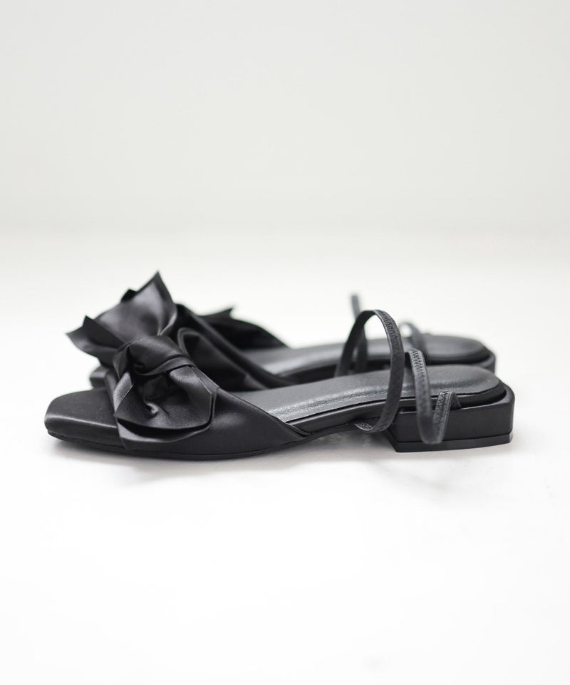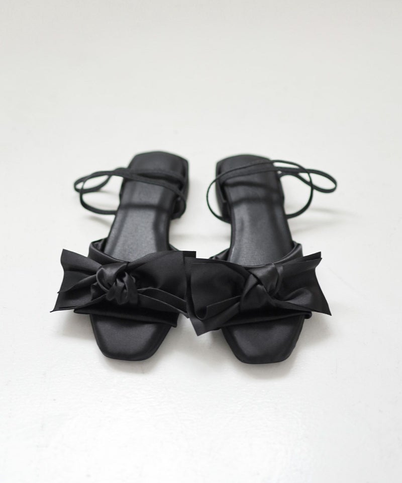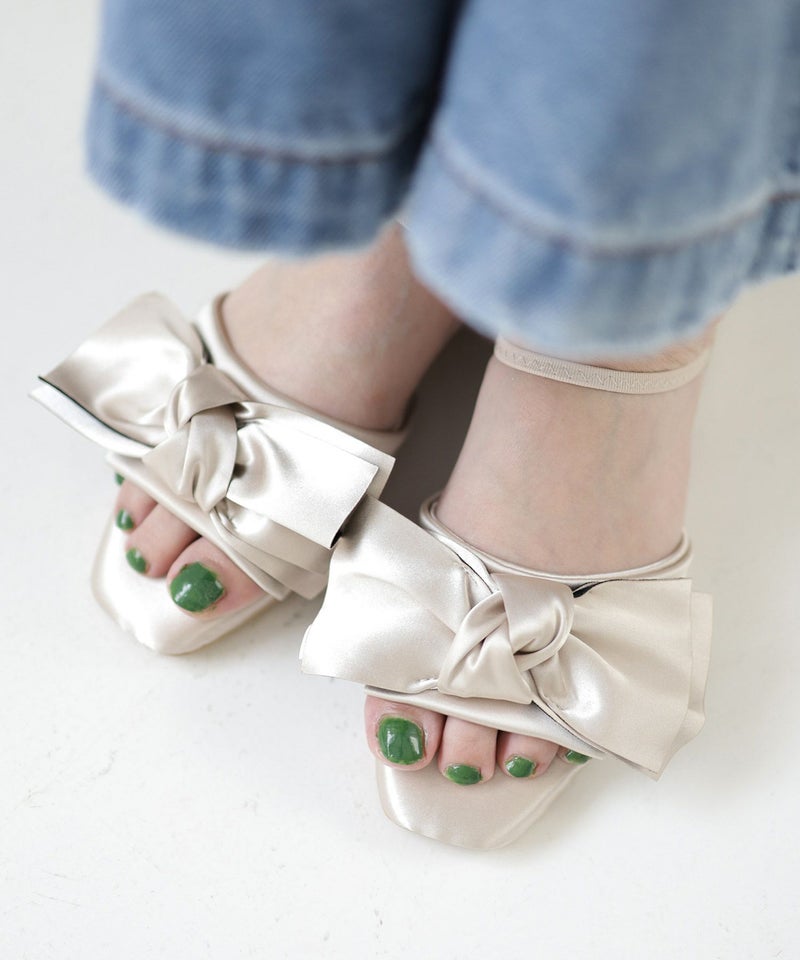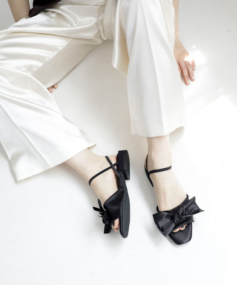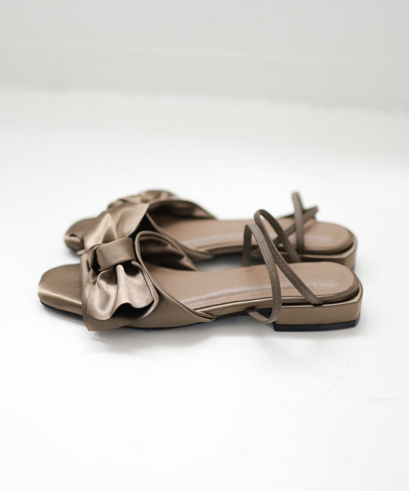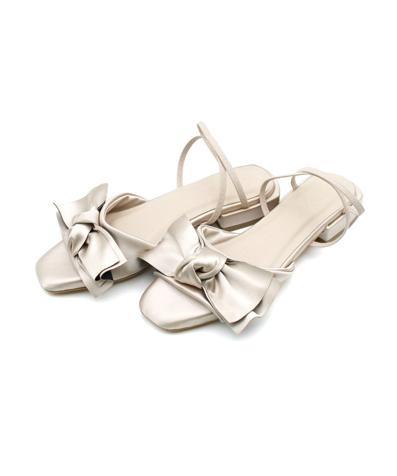 サテンリボンゴムフィット2Wayローヒールサンダル