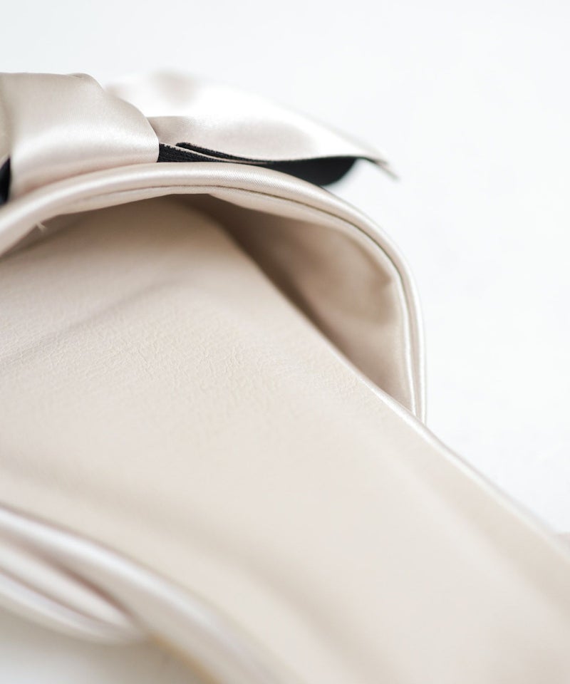 上品な艶感のサテンは、実はストレッチ素材!伸縮してどんな足の形でも優しく包み込んでくれるので、甲高・幅広・外反母趾の方にもオススメ。肌触りも良く、とろけるような柔らかな履き心地を実現しました。