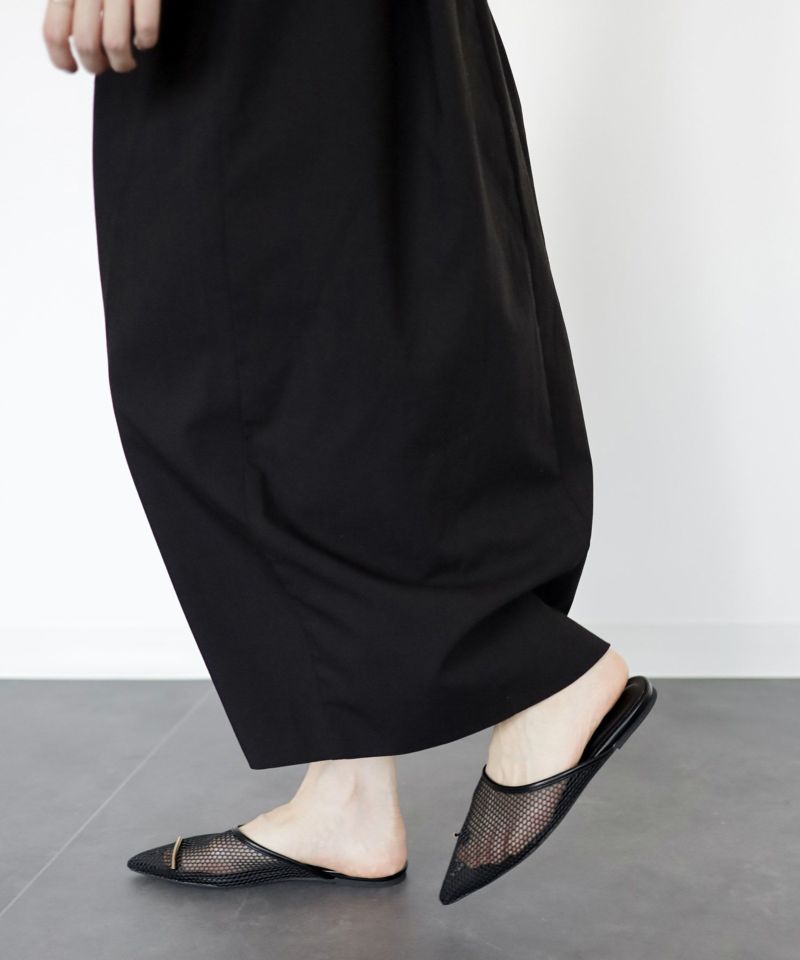 脱げやすい!そんな印象を覆すミュールサンダル。履いてみて納得する、脱げにくさの秘密はサンダルの中に仕込みました。シャープなトゥが足元を引き締めてフラットシューズでもスタイル良く演出してくれる一足です。