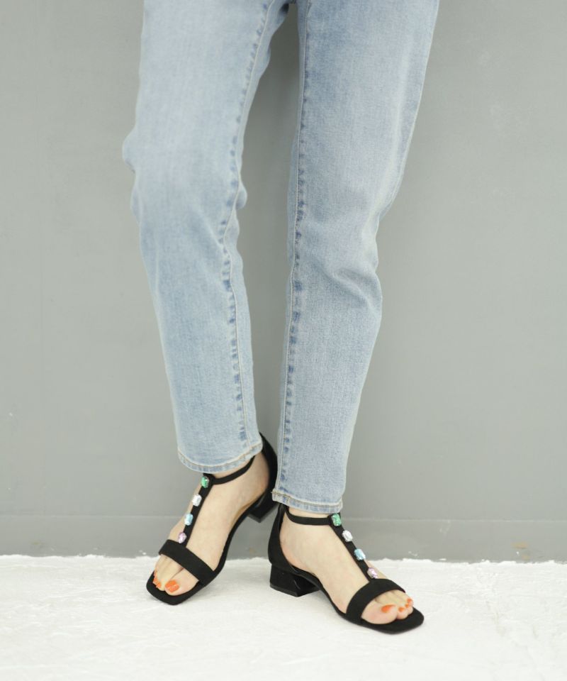 4. カラービジューTストラップローヒールサンダル▲返品交換不可