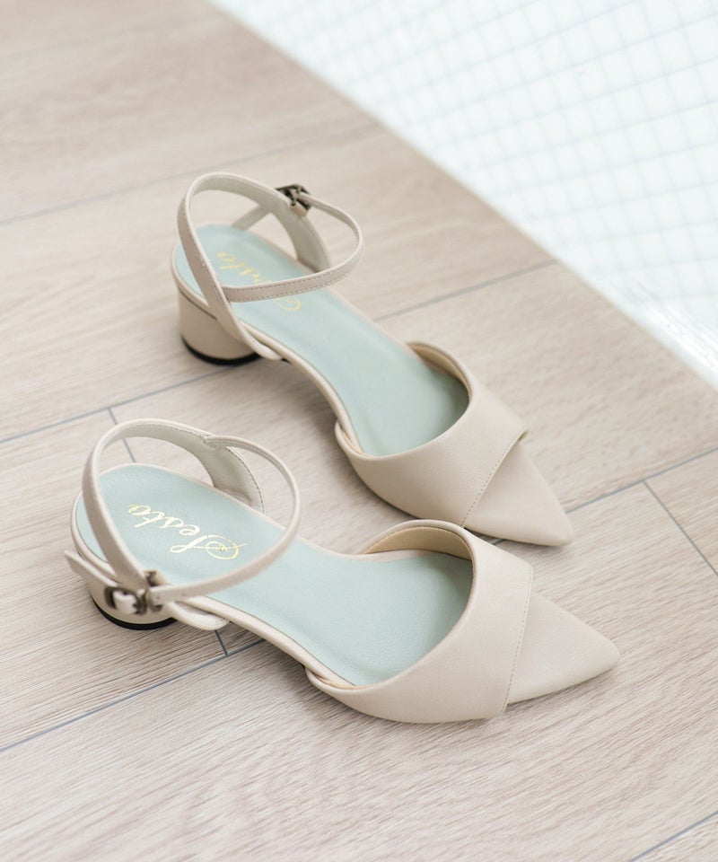 シンプルの中にさりげなくポイントを加えたヒールデザイン。