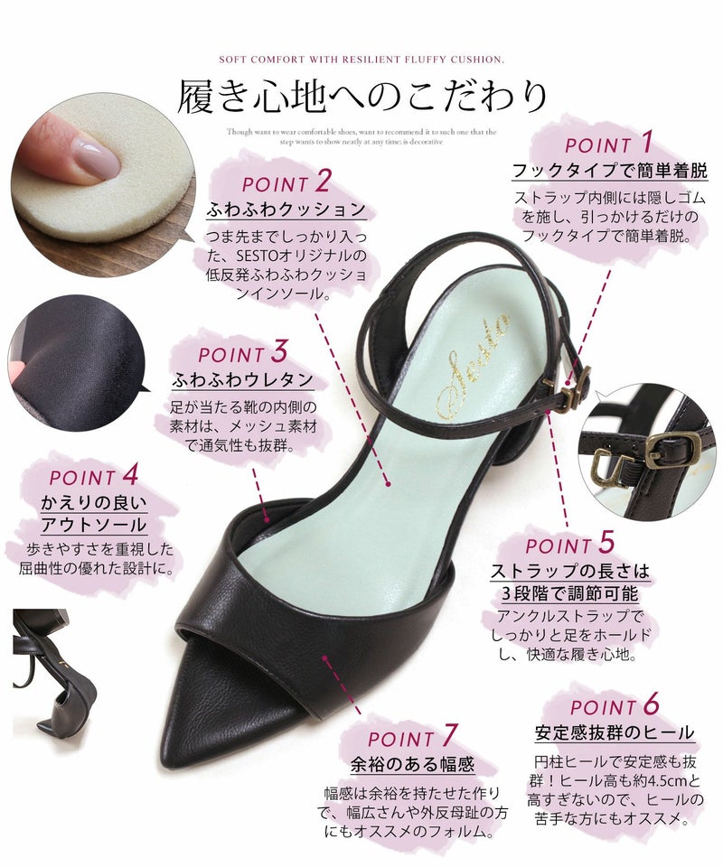 円柱ヒールで安定感も抜群!ヒール高も約4.5cmと高すぎないので、ヒールの苦手な方にもオススメです。