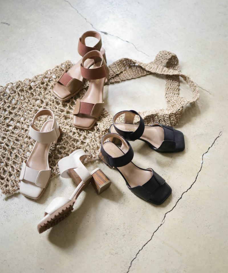 4. 自分の足にフィットする!ゴムフィットチャンキーヒールサンダル