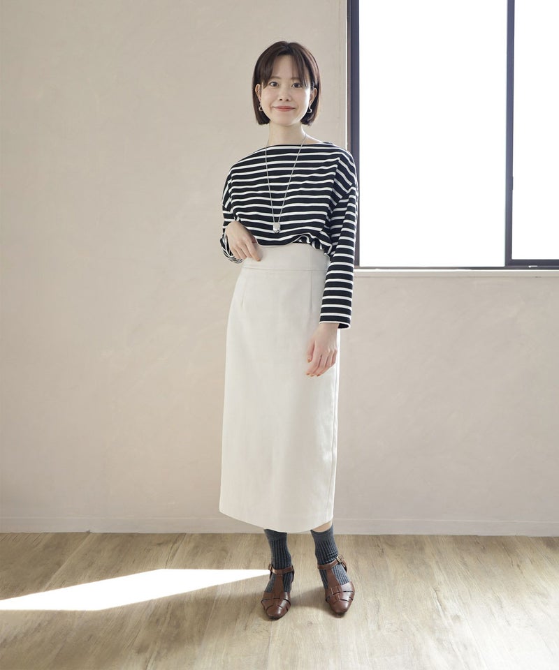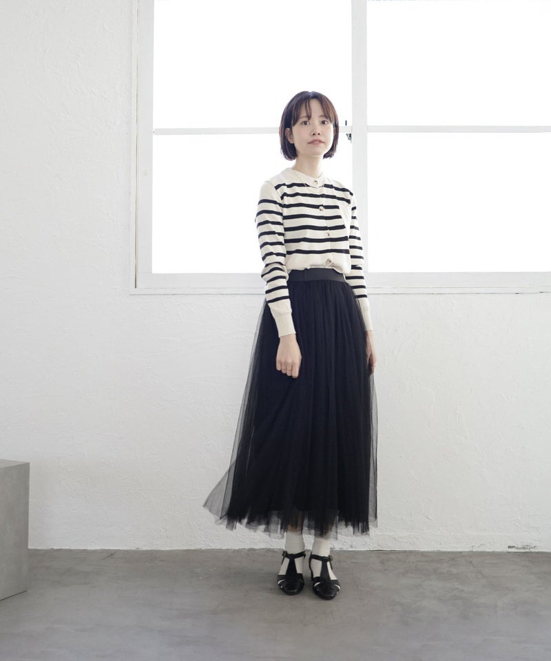 デニムパンツとカジュアルに合わせたり、シアー素材のスカートに合わせても品よくマッチします。