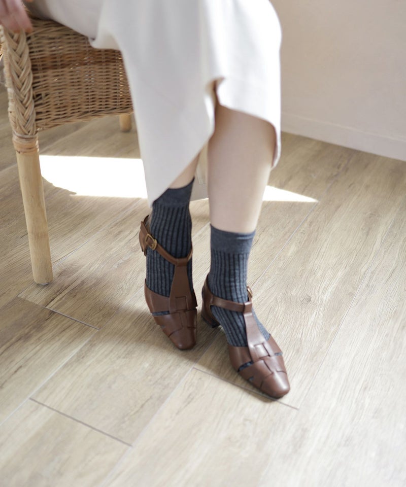 シャープで足がきれい見えしますが、ポインテッドトゥよりつま先の空間に余裕ができるので窮屈感はありません。