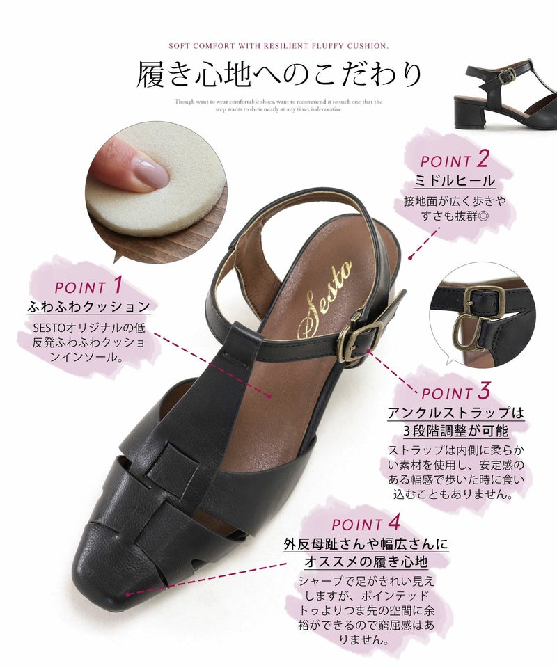 しっかりとスタイルアップできるミドルヒールは、接地面が広く歩きやすさも抜群◎