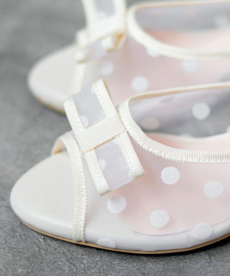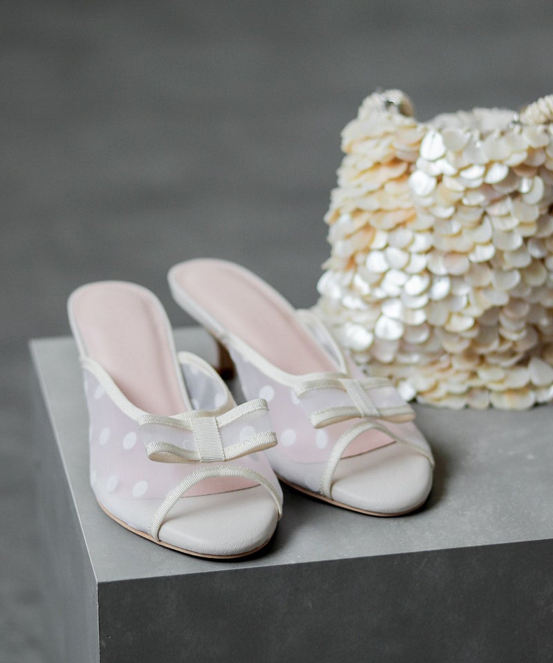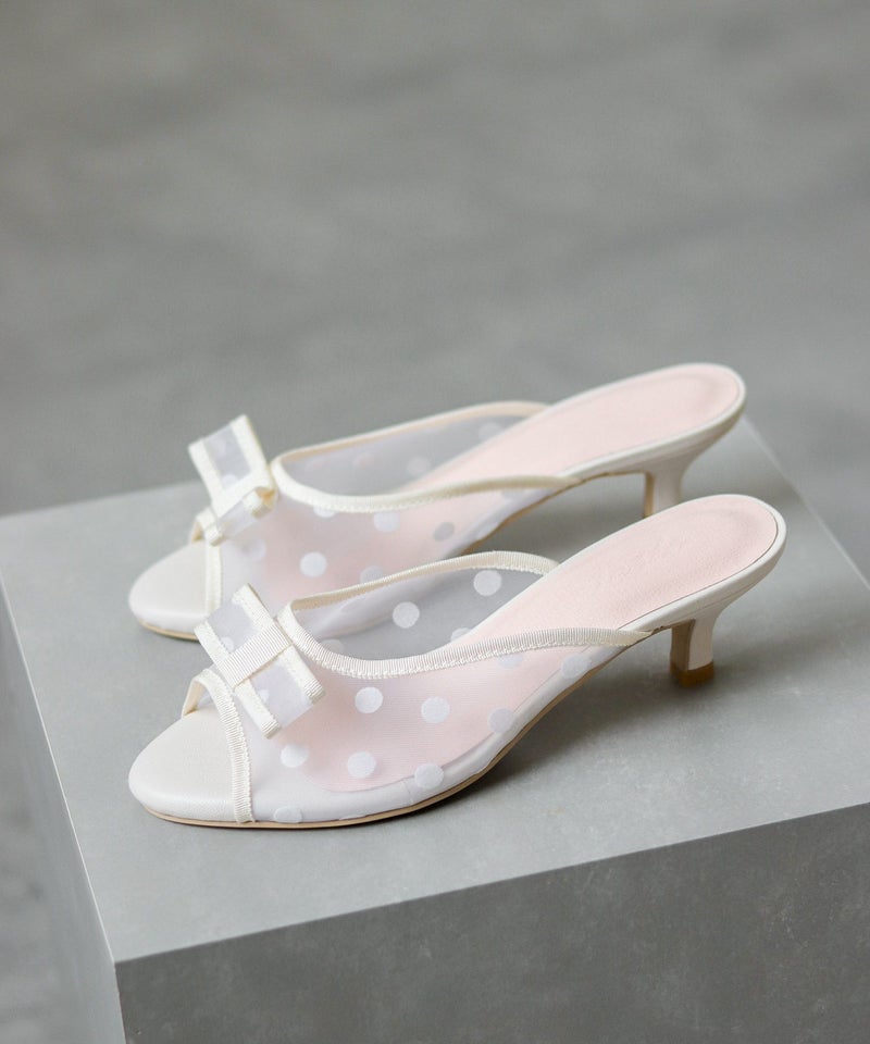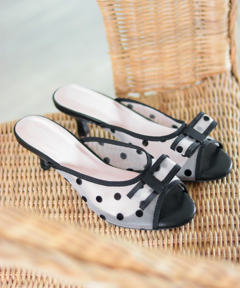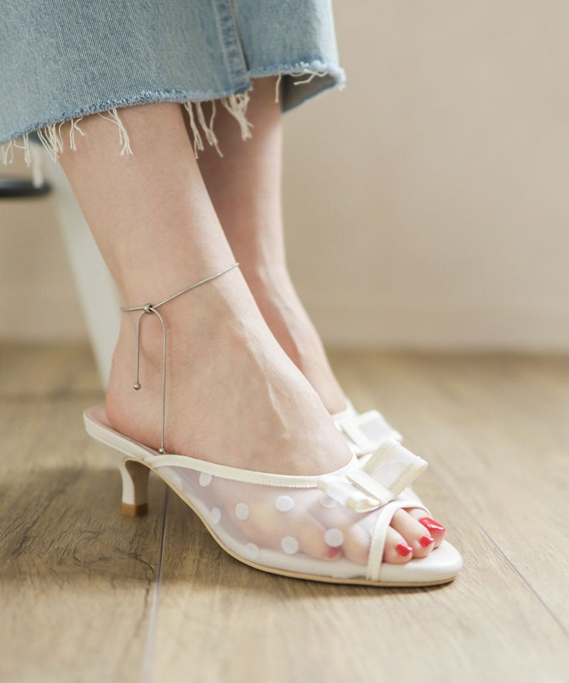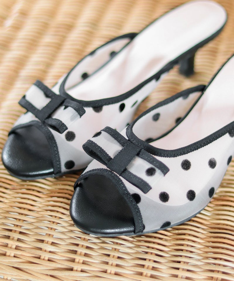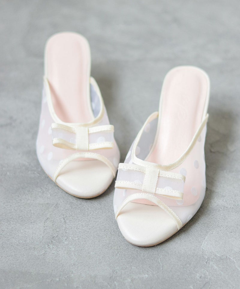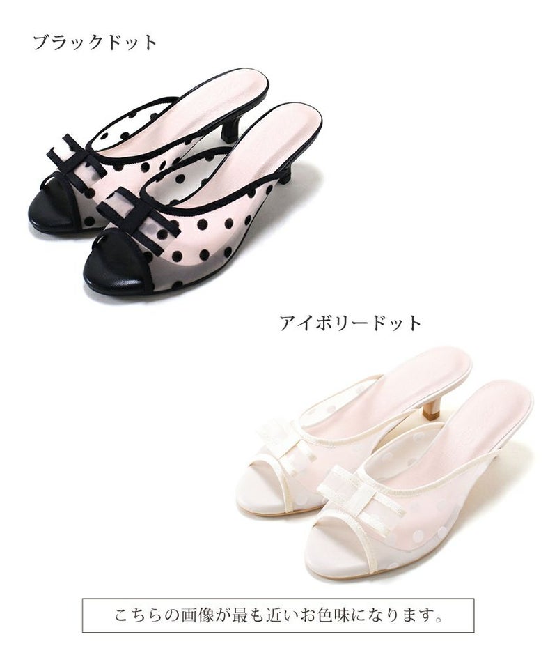 商品説明人気のリボンモチーフと、チュールの透け感が可愛いミュールサンダルが登場。