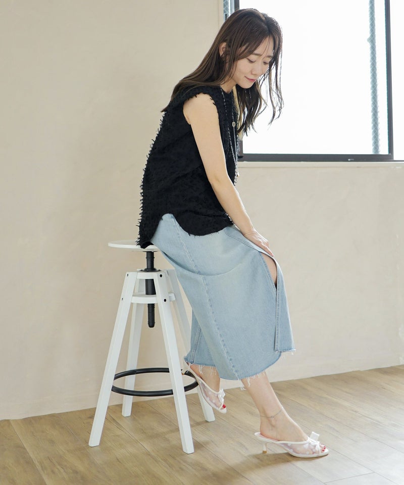 シアーアイテムでも足元なら肌見せしすぎずにコーデできます。