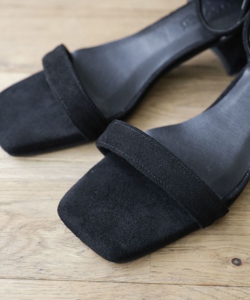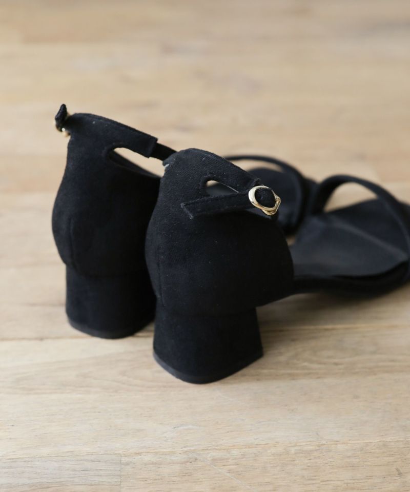 ベーシックでオフィスにも馴染むブラックは、スエード調素材で落ち着いた雰囲気。