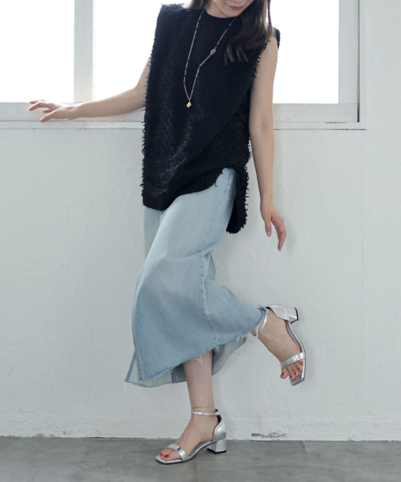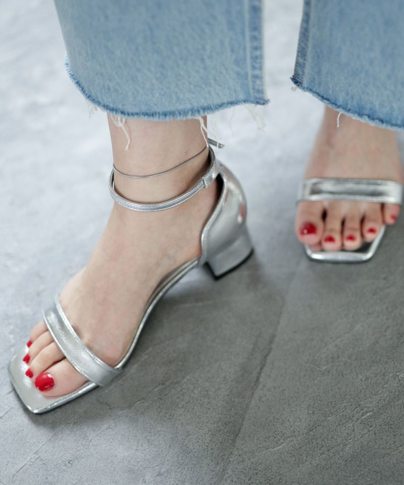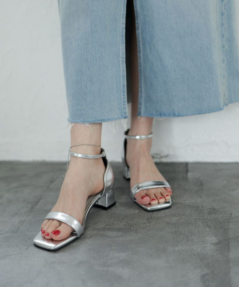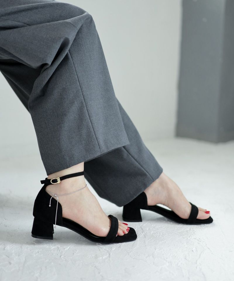 アンクルストラップはさらに細い幅感で、足首がきゅっと引き締まって見えます。