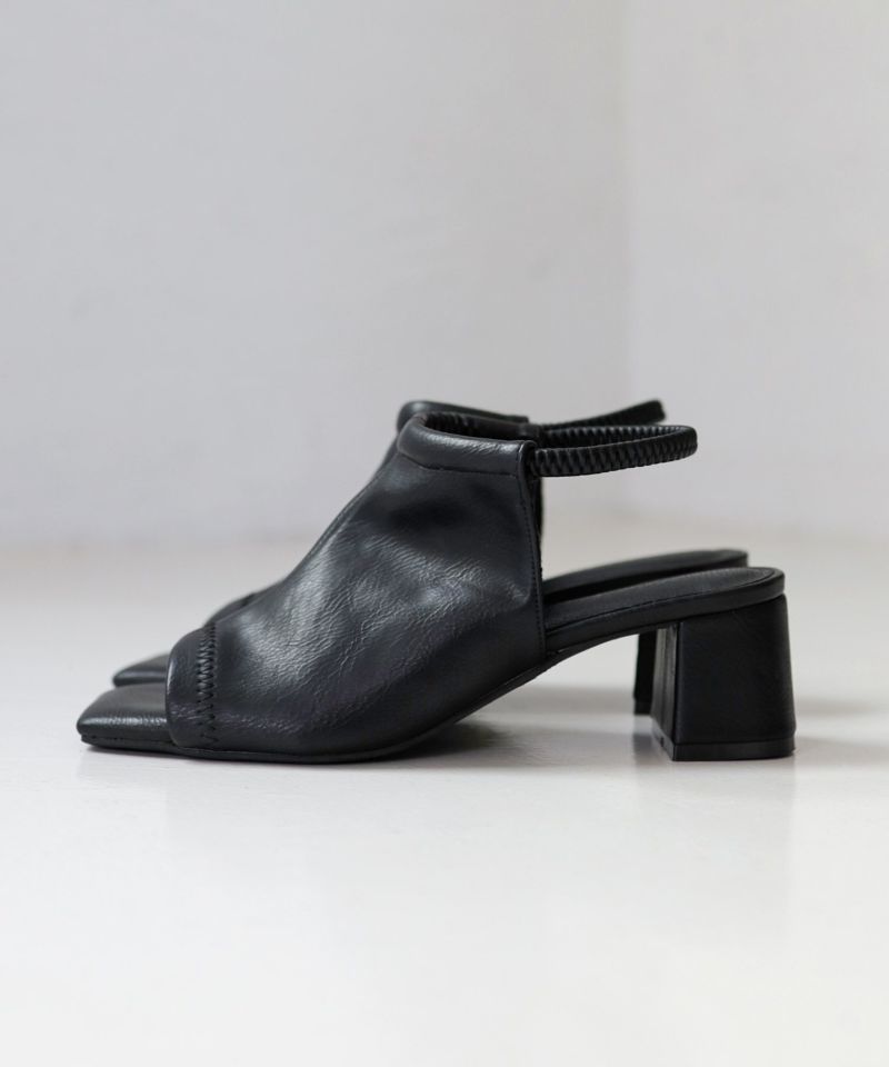 大人っぽさを添えるスクエアトゥと、ホールド感のある深めシルエットで女性らしさとモードな印象を兼ね備えたデザインに。
