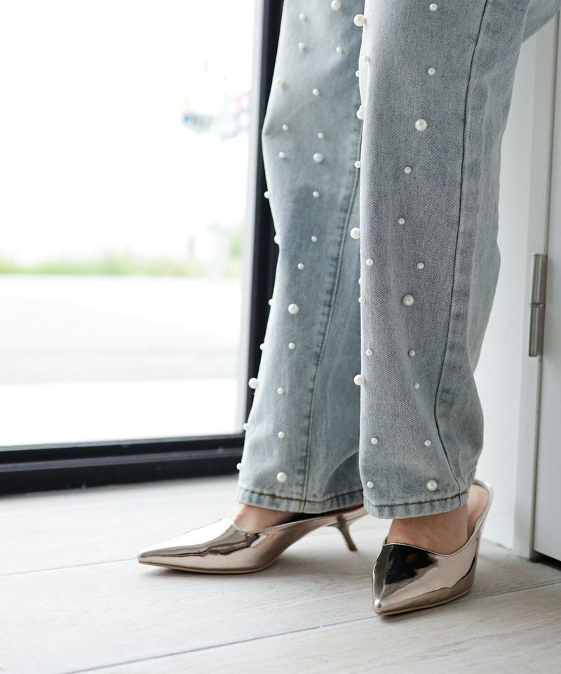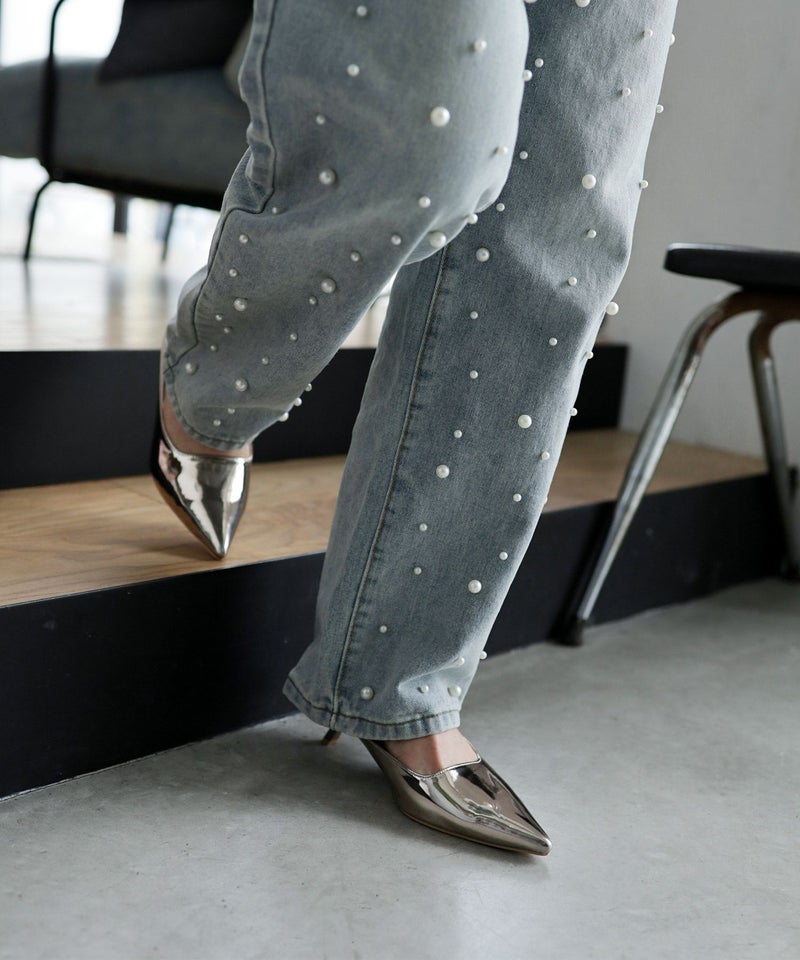 すらっと伸びたトレンドのポインテッドトゥが足をよりきれいに魅せてくれます。