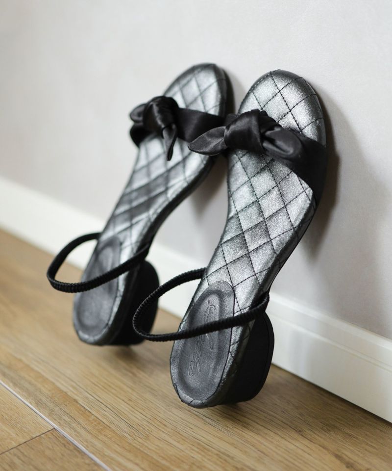 つま先側のストラップに添えられたリボンは取り外しができるので、シンプルに履きたい時は玄関先でさっと簡単に取り外しできます。