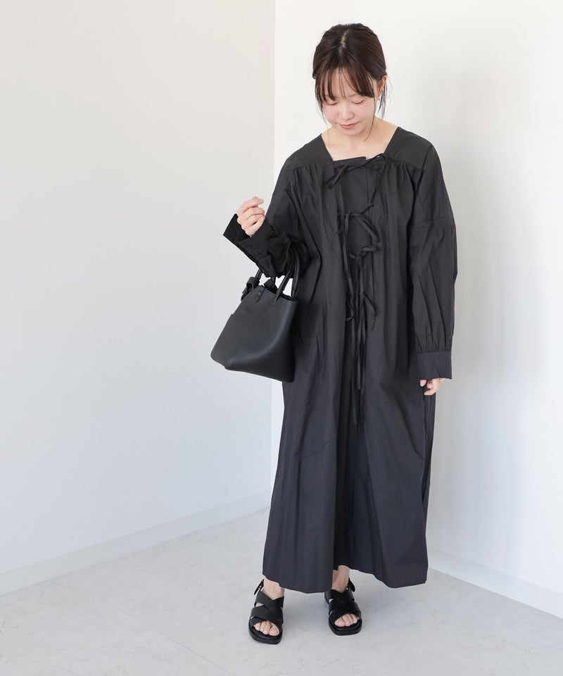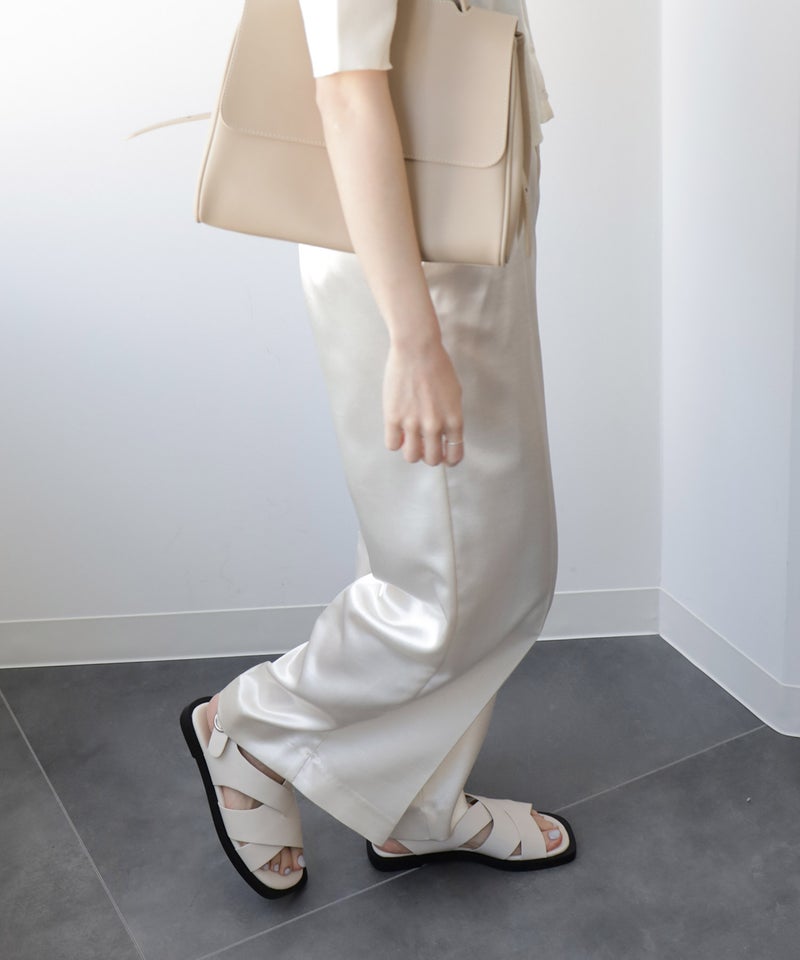 ざっくりとした網目と、ツルッとした生地感の美しいコントラスト。サンダル特有の「ラクさ」はそのままに、洗練された大人のモードスタイルを足元から演出します。