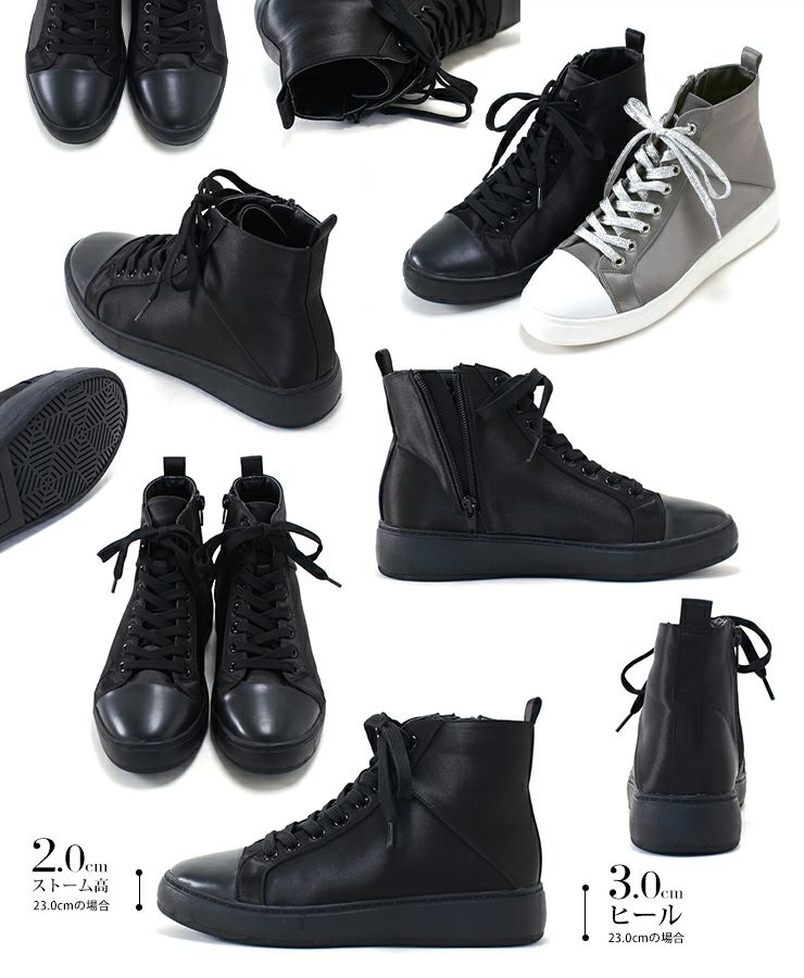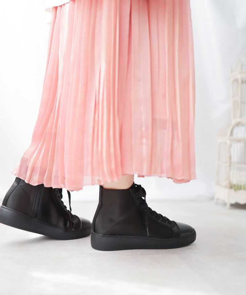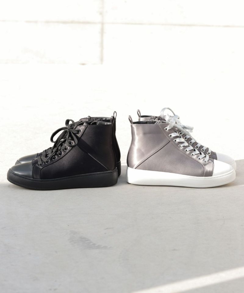 サテン素材8ホールレースアップ厚底スニーカー▲返品不可