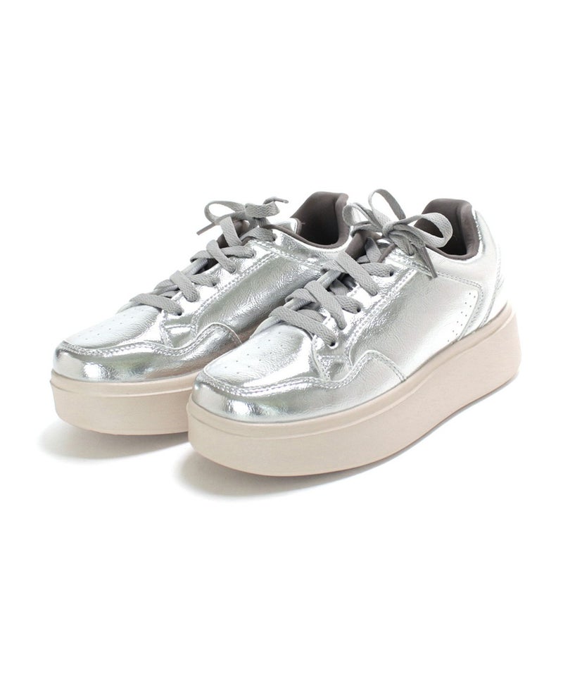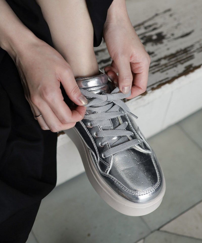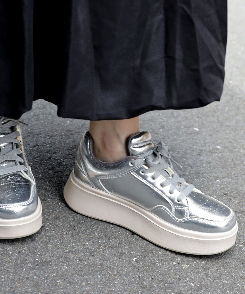 人気のシルバーは、今注目を集めているメタリックな艶感のスニーカーに仕上げています。