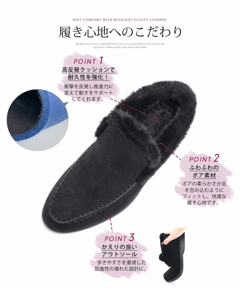 内側には全面ふわふわのボア素材を敷き詰め、寒い日でもつま先までしっかりと暖かさをキープしてくれます。