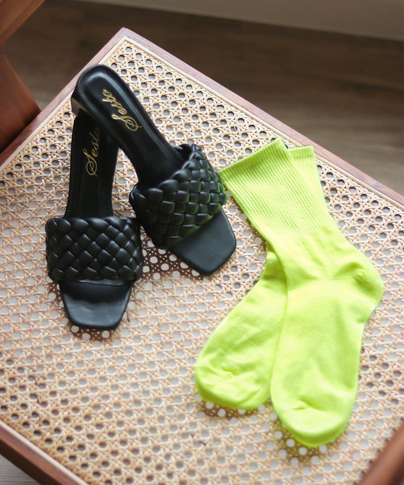 ビビットなネオンカラー。今年は厚底・ボリューム感のあるシューズやサンダルもトレンドなので、旬のシューズとの相性も抜群〇