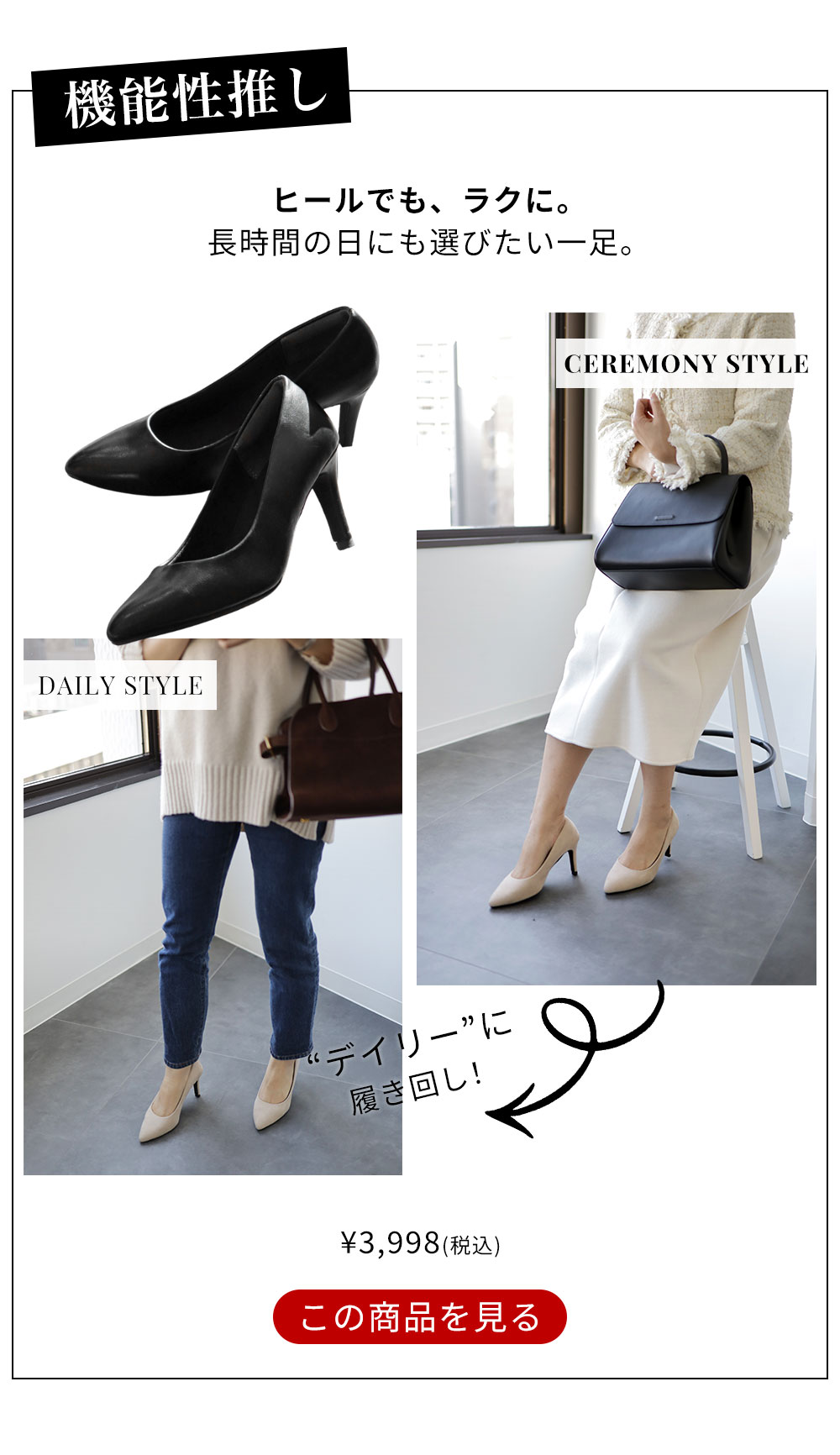 他の画像を見る 削れないかかとゴム&高機能クッションの美脚ヒールパンプス 一部3月末・4月末頃入荷予定 再入荷 試着会対象 500円OFFクーポン対象 カートに入れる お気に入りに登録する 販売価格 ¥ 3,998 税込