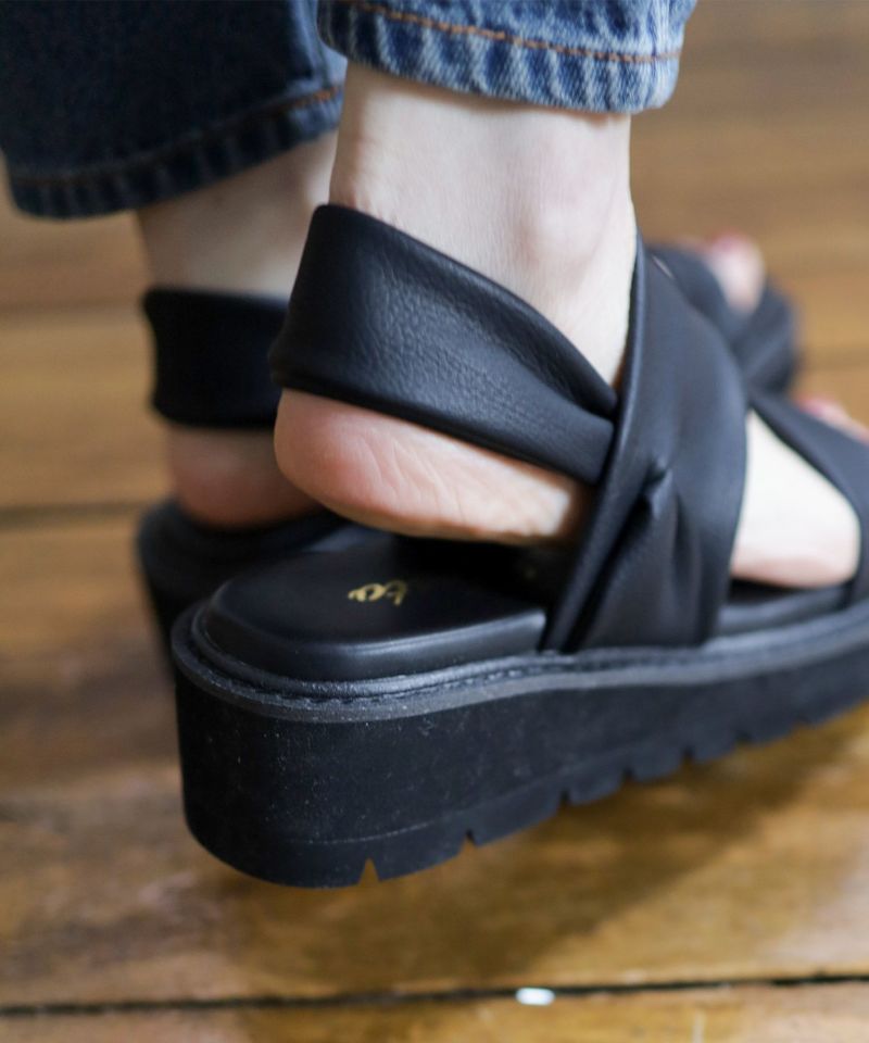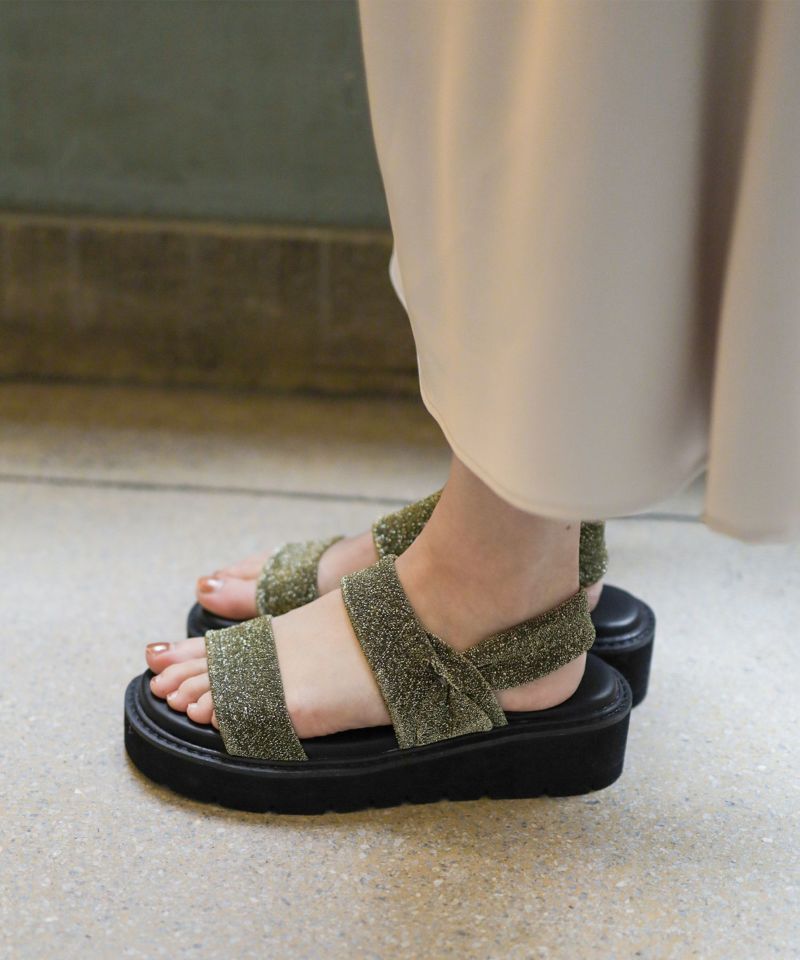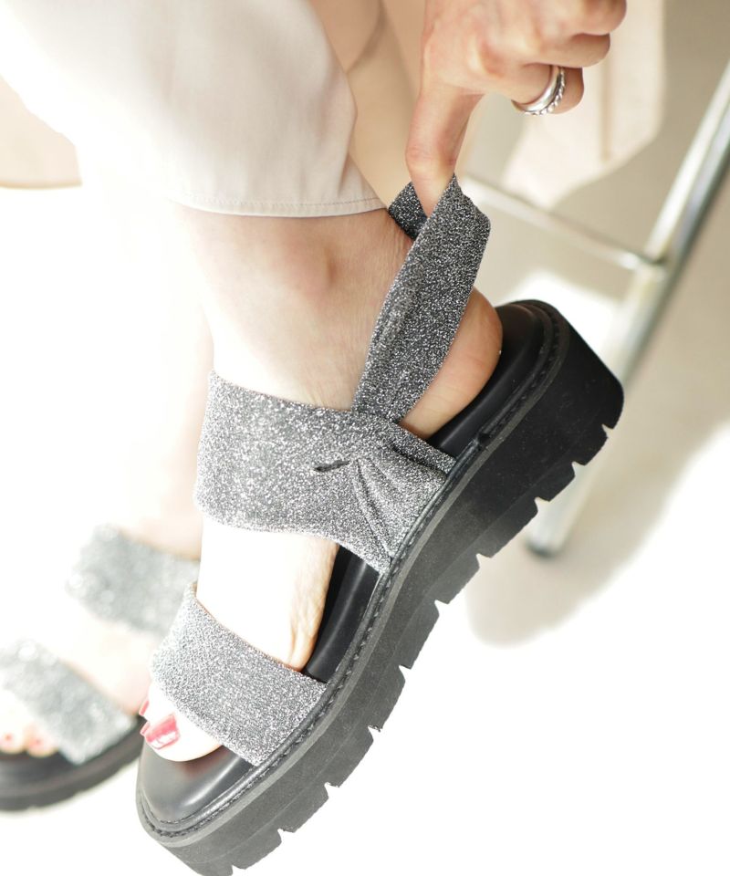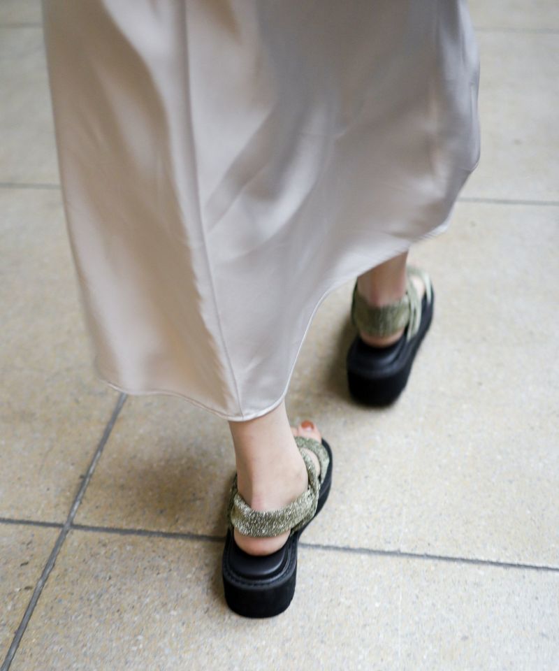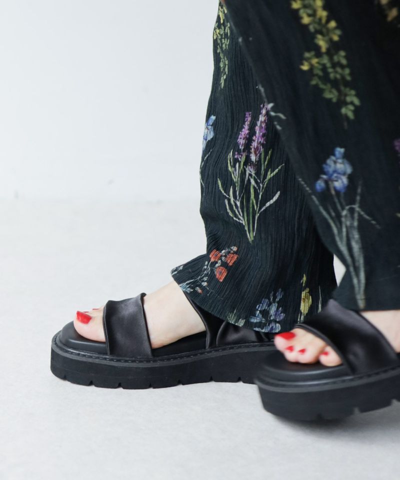 靴擦れゼロを目指して作られた、ストレッチサテン軽量厚底サンダルをアップデート。