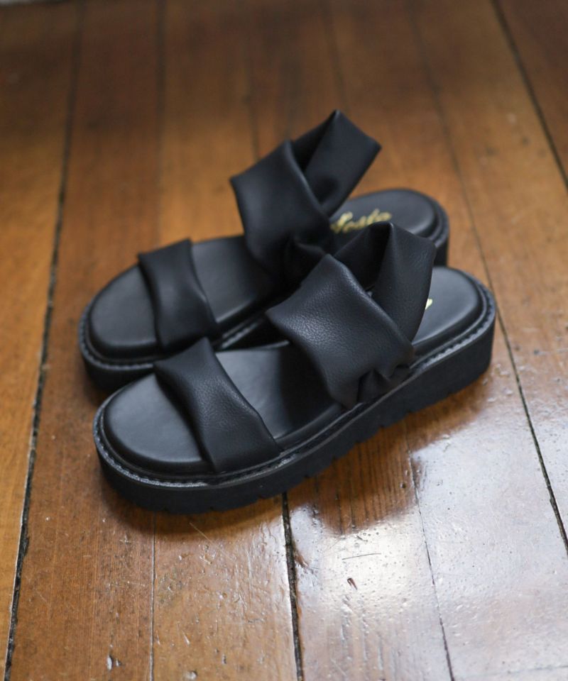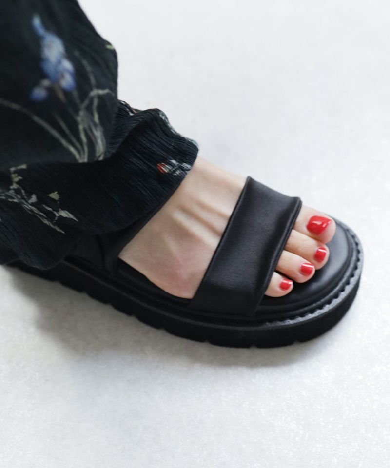 人気サンダルのアウトソールに更に厚みをつけてしっかりスタイルアップできる一足!つま先とかかとで高低差を感じないフォルムにすることで、フラットシューズのような感覚で履けます。軽量のEVA素材なので、重たくて疲れることもありません