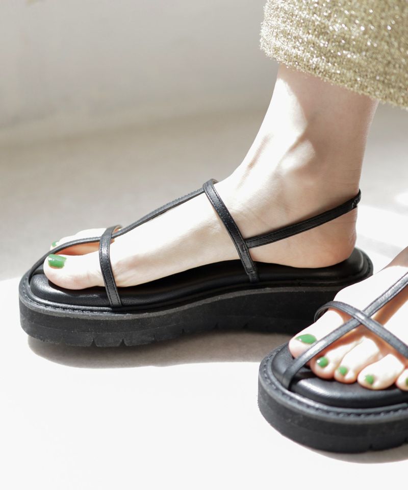 軽量厚底Tストラップサンダル