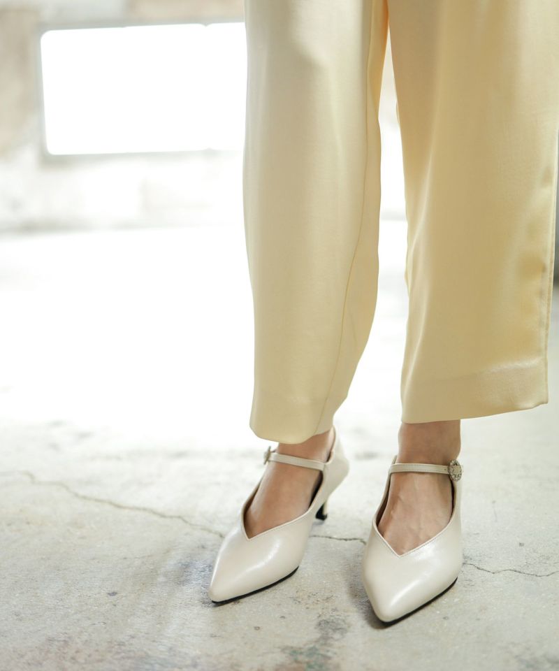 今季注目のポインテッドトゥに甲浅のVカットラインなど、フェミニンなシルエットが足元を美しく魅せてくれます。