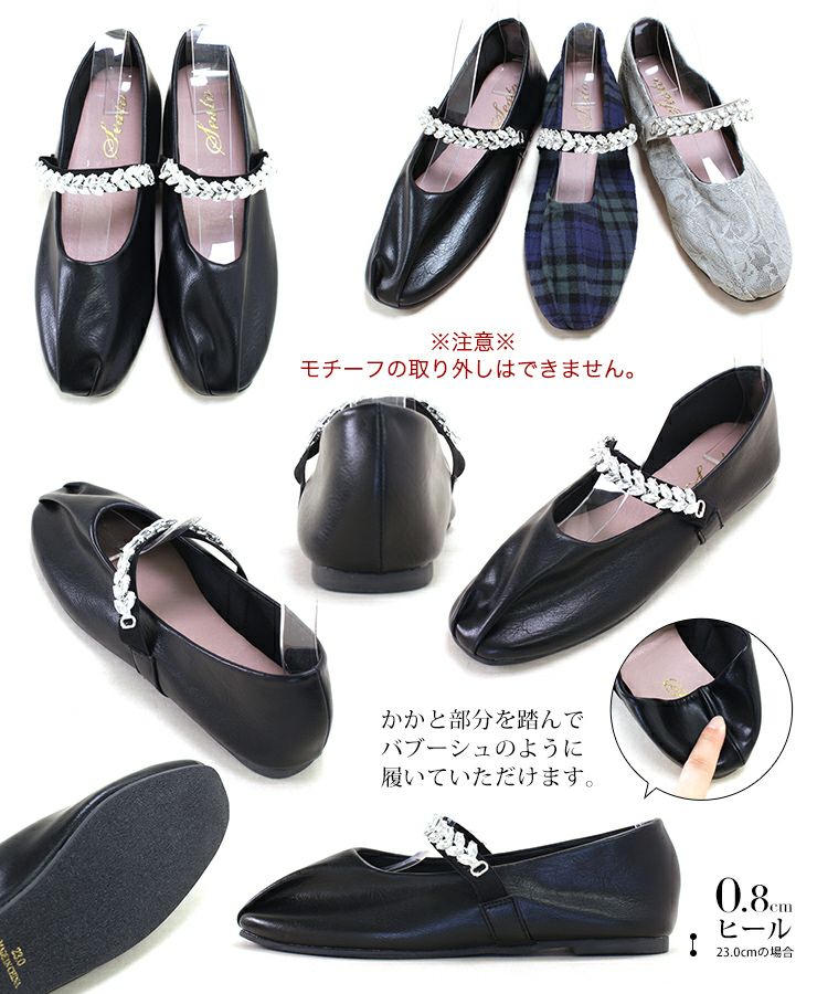 4. ビジューストラップ柔らかメリージェーンバレエシューズ▲返品交換不可