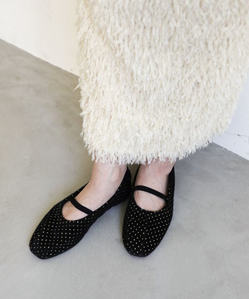 シンプルなデザインなので、素材で遊べてシーズンムードたっぷりな一足に。