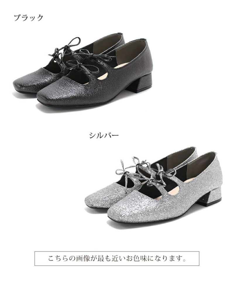 4. レースアップ風リボンゴムストラップメリージェーンパンプス