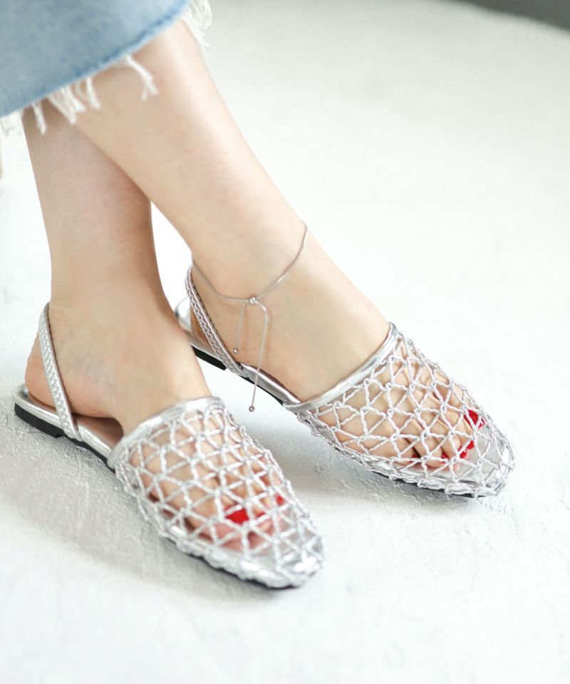 4. 手編みメッシュ2wayフラットサンダル▲返品不可