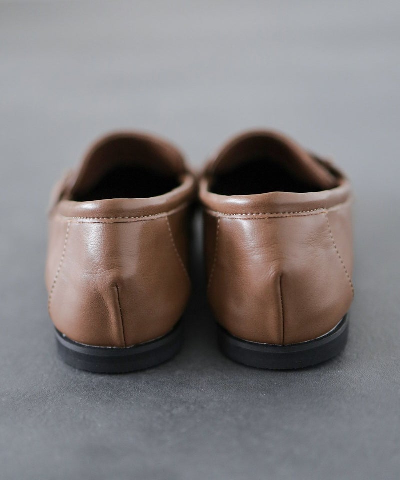 カジュアルに見えがちなモカシンですが、繊細なゴールドのモチーフを添えて上品さを演出。シンプルな装いにもトレンド感をプラスできます。日常のカジュアルスタイルにも、きれいめな着こなしにも自然に馴染む、洗練された大人の一足です。