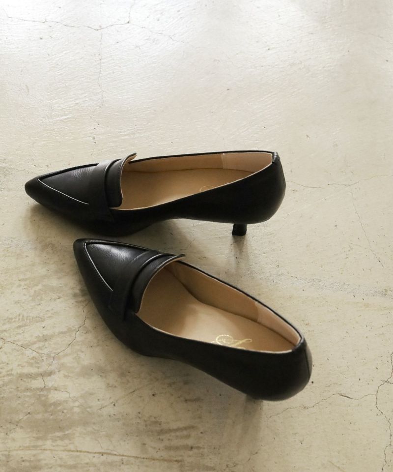 4. ミドルヒールポインテッドトゥローファーパンプス