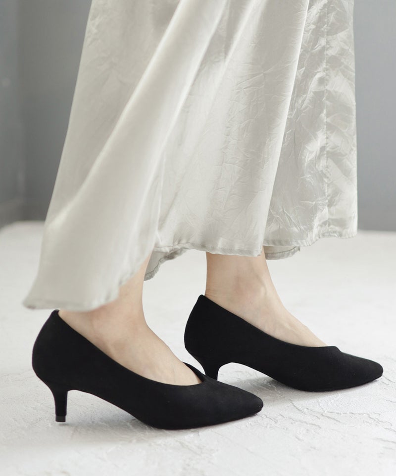 削れないかかとゴム&高機能クッションの美脚ローヒールパンプス