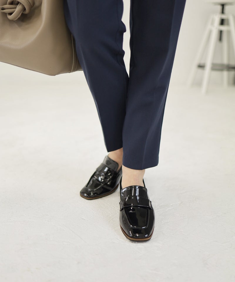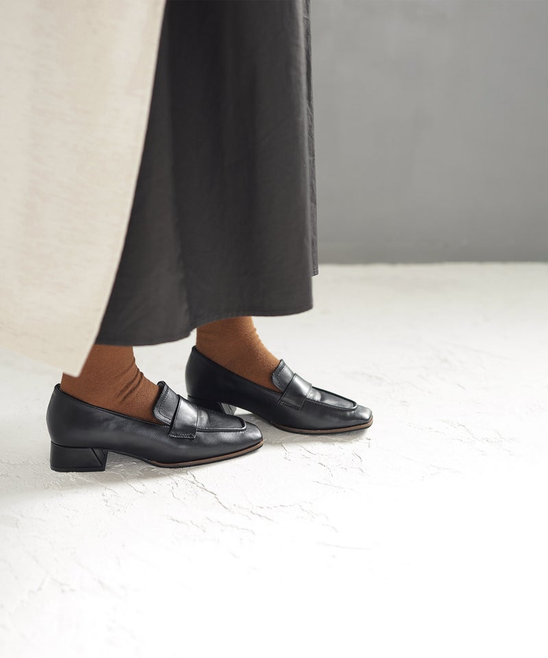 トラッドな印象の強いローファーに、スリムなスクエアトゥとヒールでエレガントさもプラス。