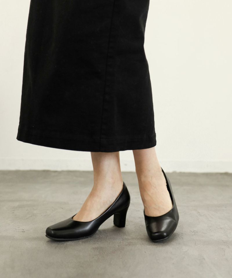 4. ゆったり幅広ふわふわクッションインソールスクエアトゥヒールパンプス