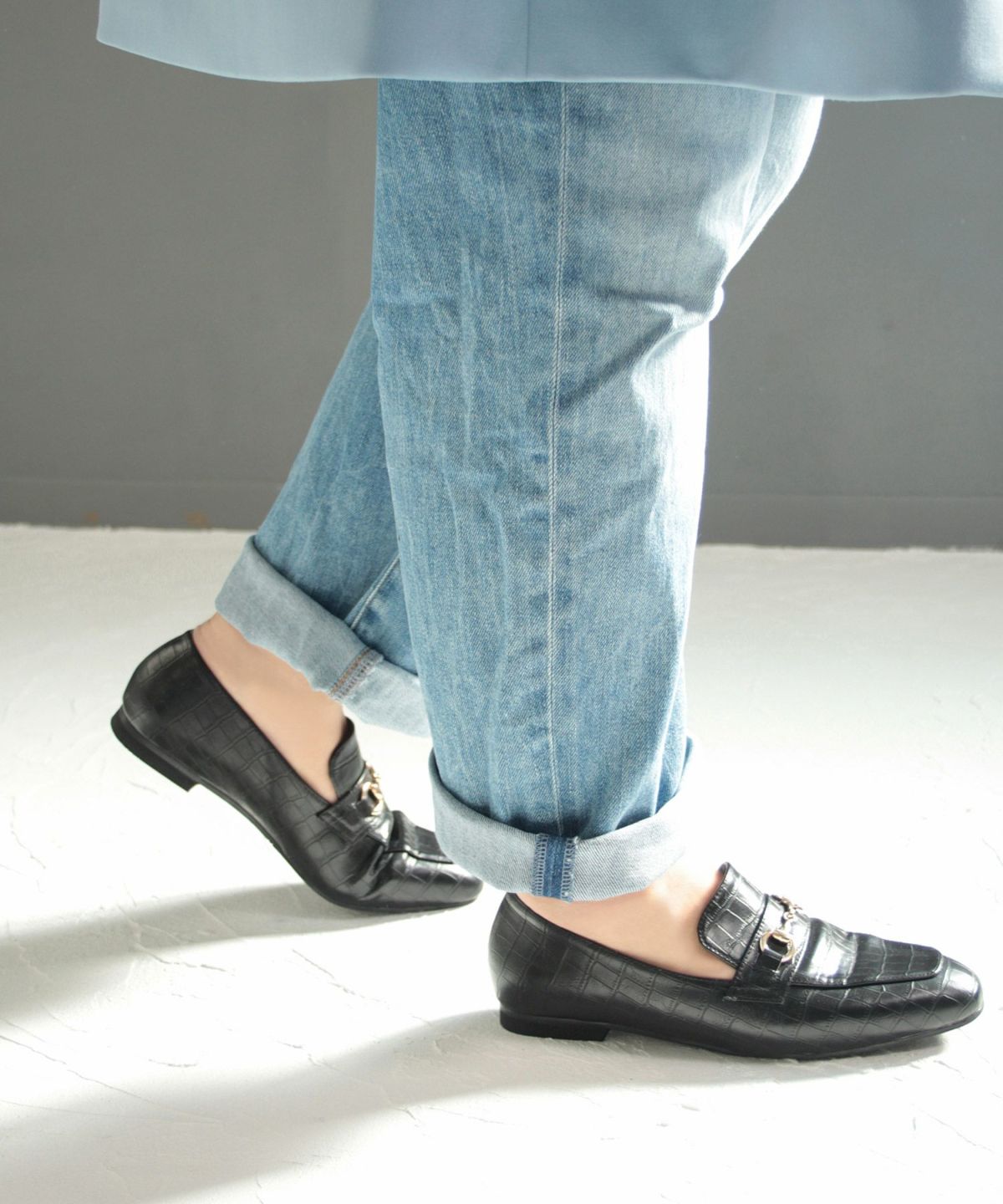 【4E幅広・大きいサイズ】スクエアトゥビット付きローファー ▲返品不可